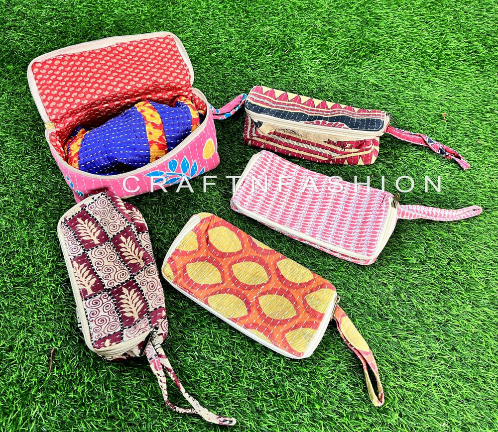 Wholesale Assorted Indian Handmade Embroidered Kantha Pouch, Utility Pouch, Makeup Pouch, Toiletry Bag, Coin Pouch, Kantha Cotton Pouch, Cosmetic Pouch, Vintage Kantha Pouch.