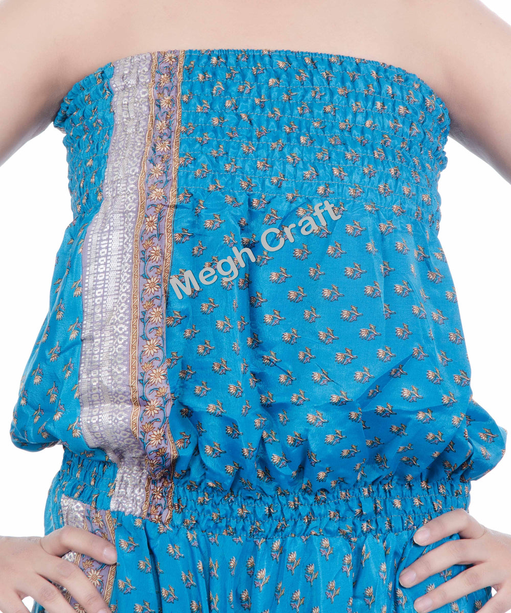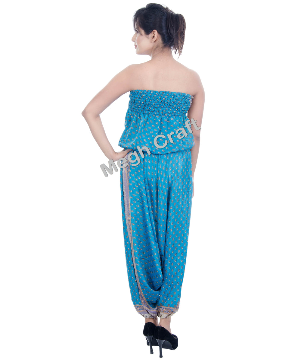 Designer Summer fashion wear Recycled Vintage Silk Sari Halter Neck Women jumpsuit , Smocked Jumpsuit.