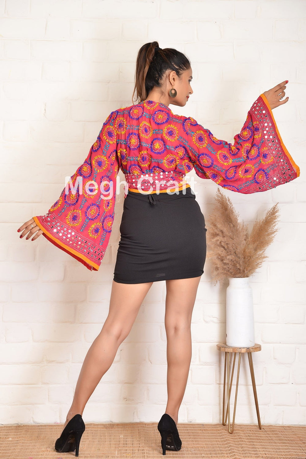 Designer Indian Embroidered Handmade Bell Sleeve Tie Top. Its Tie top so can be flexible for any size.