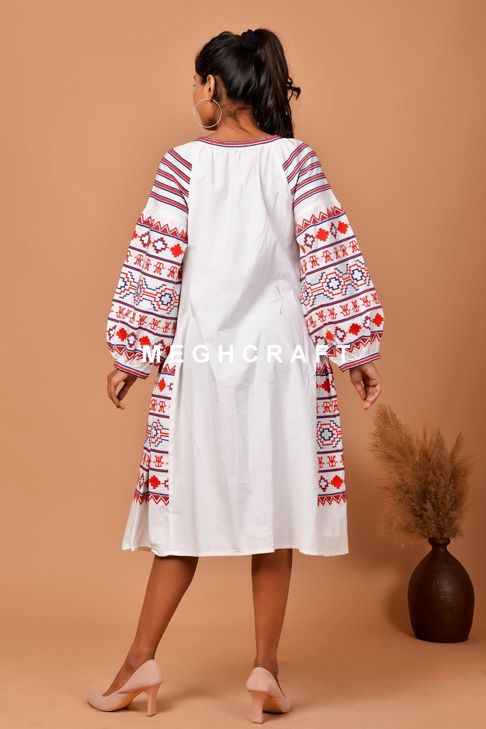 Designer Rayon Embroidered Long Sleeve Midi Dress. Best Suitable for Beach Wear, Summer fashion, Sustainable fashion, Boho Fashion & More.