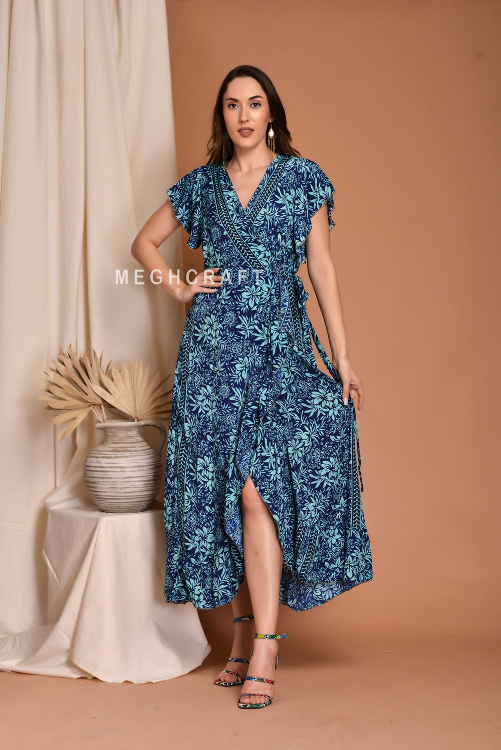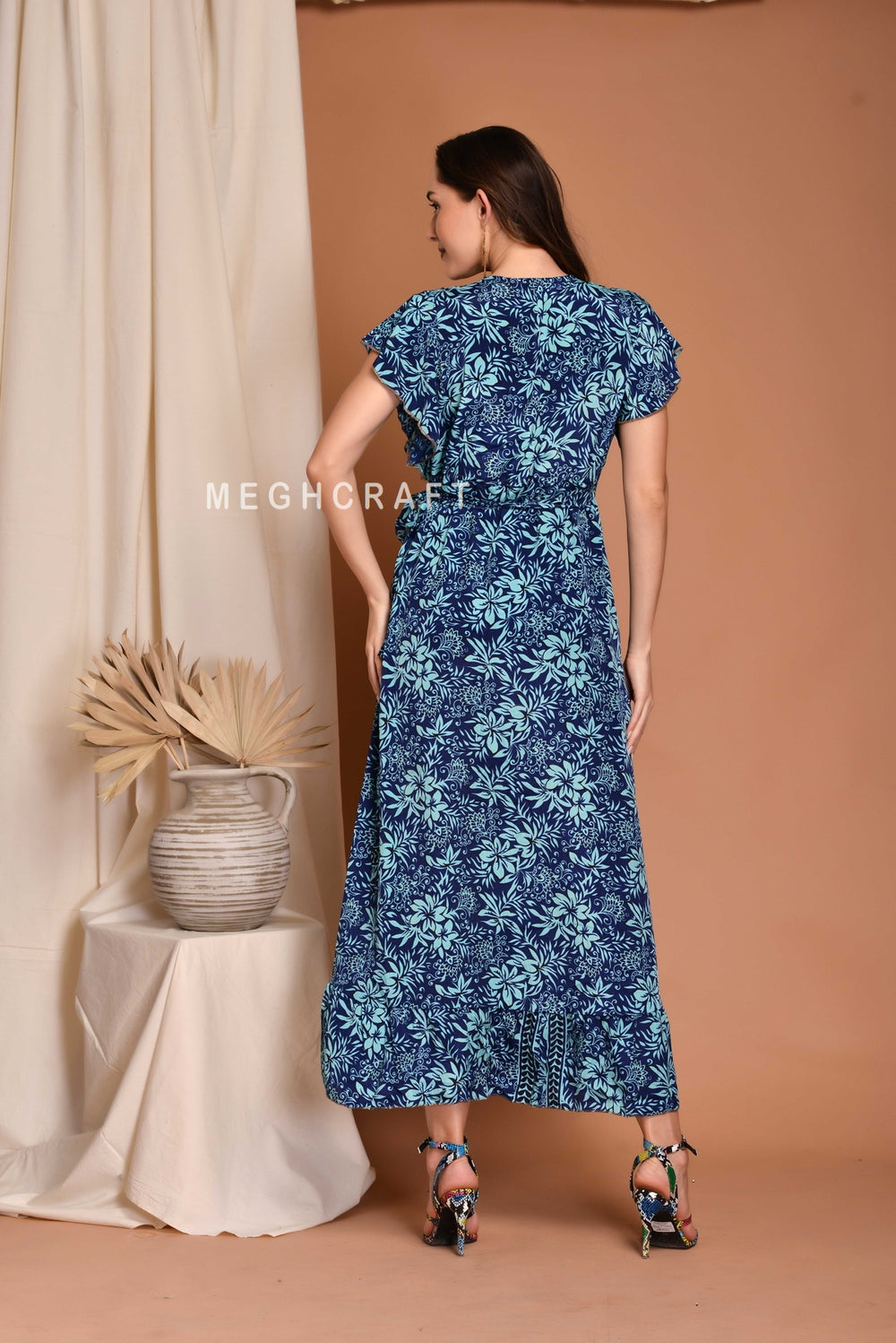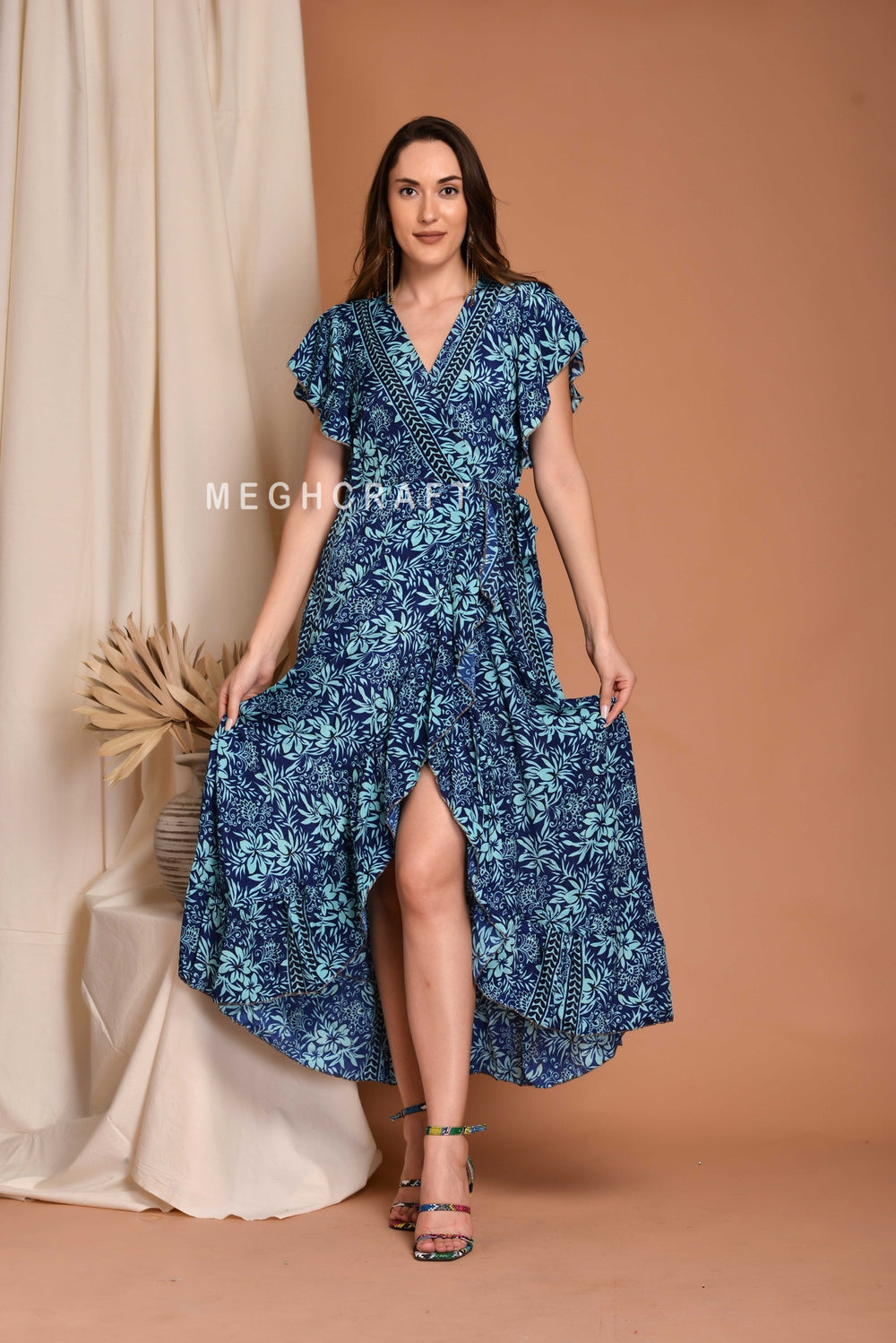Indian Designer Long Floral Printed Wrap around Kimono Robe Cardigan.